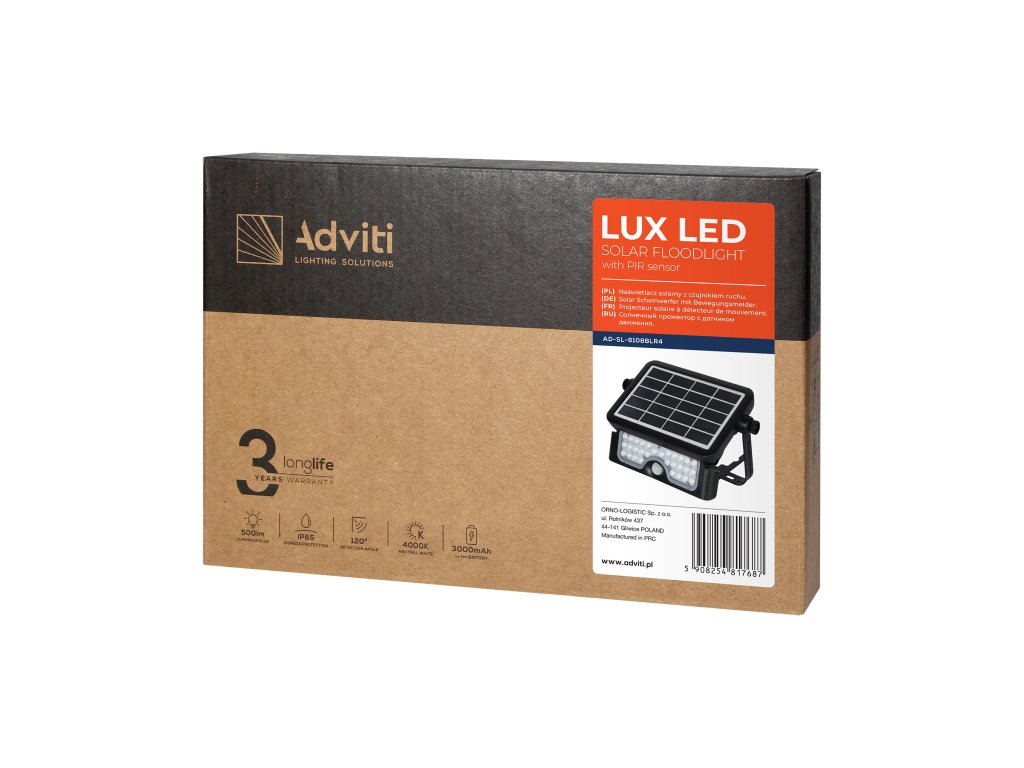 Solarni LED reflektor 5W sa senzorom, 500lm, IP65 dizajniran je s obzirom na najvišu kvalitetu i dugotrajnost. Idealan je za osvjetljavanje ulaza, staza, vrtova i drugih vanjskih prostora gdje trebate pouzdano i energetski učinkovito osvjetljenje. Zahvaljujući ovom reflektoru možete se osjećati sigurno i u mraku, jer se automatski uključuje pri otkrivanju pokreta.