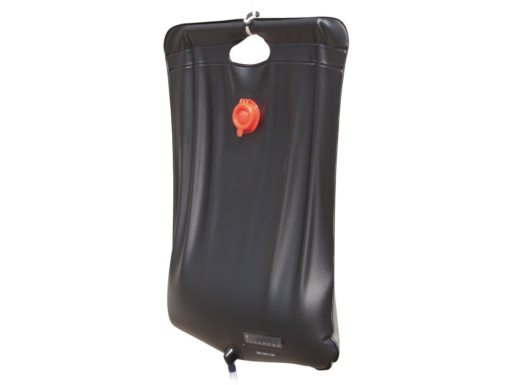 Ovaj tuš drži 20 litara vode, koja se zahvaljujući sunčevim zrakama i crnom materijalu od kojeg je izrađena, brzo zagrijava, čak i do temperature od 40 °C.
