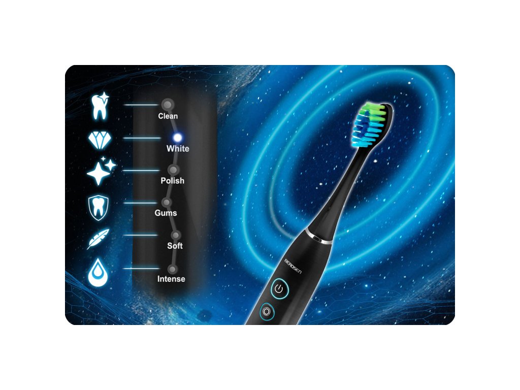 Ovo je sveobuhvatna tehnologija, koja već za nekoliko dana poboljšava zdravlje desni, smanjuje zubni kamenac i osigurava potpunu oralnu higijenu – sve u jednom uređaju!