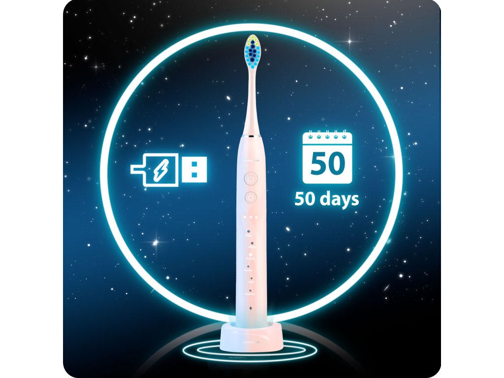 - Napredna sonična tehnologija i moćna baterija omogućuju tjedne rada na jedno punjenje, osiguravajući udobnost i pouzdanost svaki dan.