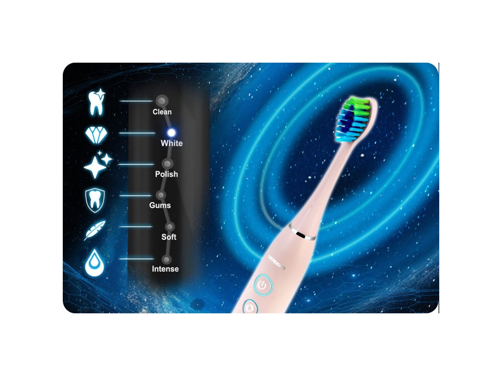 To je složena tehnologija, koja već u nekoliko dana poboljšava zdravlje desni, smanjuje zubni kamenac i pruža kompletnu oralnu higijenu – sve u jednom uređaju!