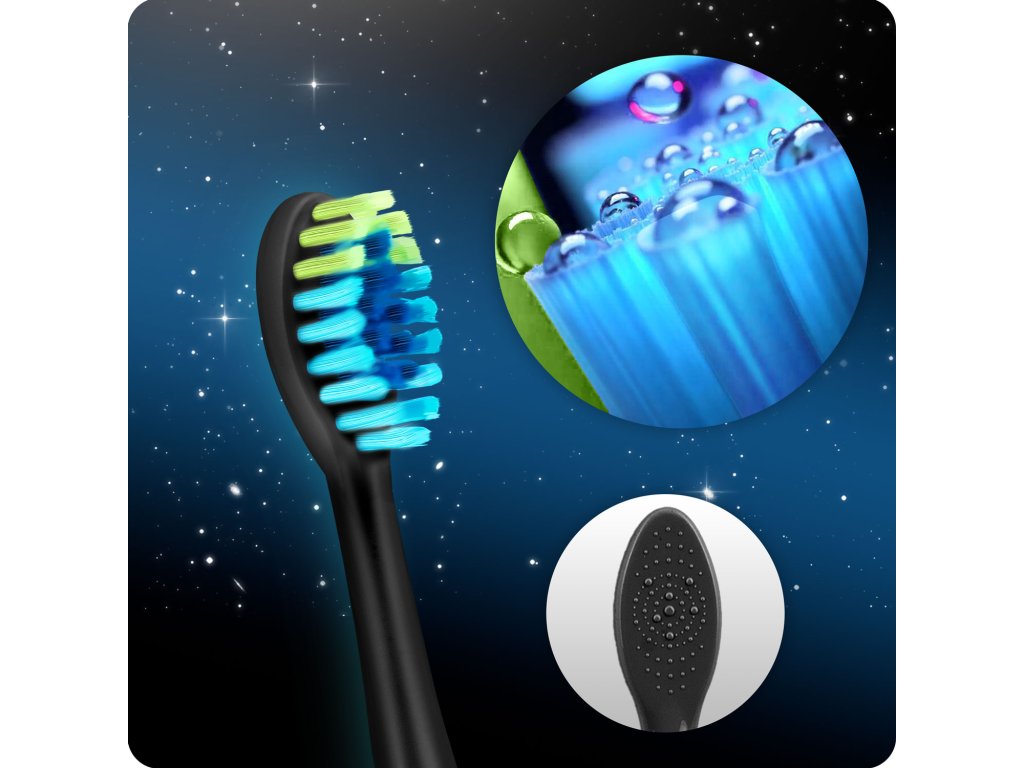 Zahvaljujući stražnjoj strani glave možete brzo i jednostavno očistiti jezik, eliminirajući bakterije i osiguravajući dugotrajnu svježinu daha.