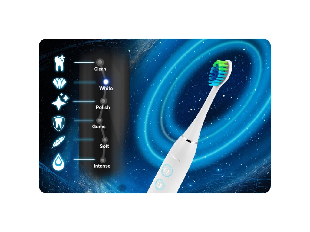 To je sveobuhvatna tehnologija, koja već tijekom nekoliko dana poboljšava zdravlje desni, smanjuje zubni kamenac i pruža potpunu oralnu higijenu – sve u jednom uređaju!