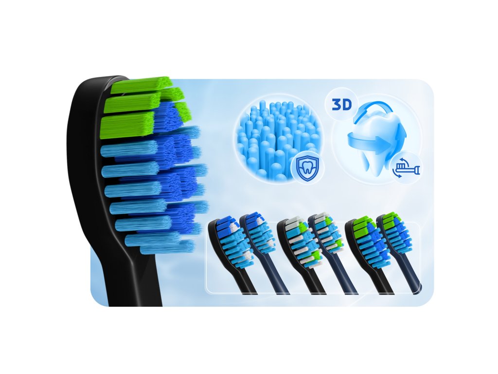 - 6 zamjenskih glava za soničnu četkicu (3 tamnoplave i 3 crne),