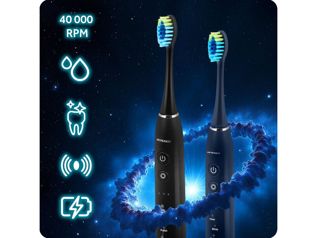 - 2 sonične četkice za zube Berdsen GALAXY s integriranom baterijom,