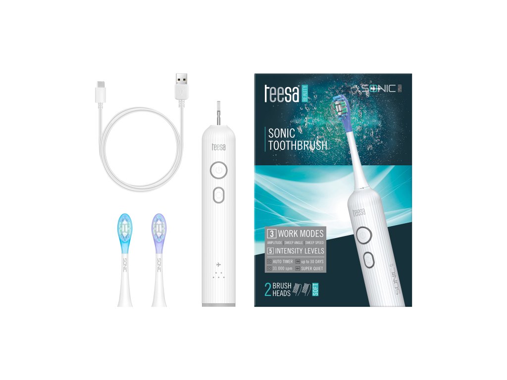 Sonic Četkica za zube Sonic Elite Sonična četkica za zube Teesa Sonic Elite predstavlja napredak u svakodnevnoj oralnoj higijeni. U usporedbi s tradicionalnim četkicama nudi učinkovitije čišćenje, uklanja više zubnog plaka i doseže teško dostupna mjesta. Teesa Sonic Elite je profesionalna sonična četkica koja će osigurati zdrave i bijele zube na najudobniji način.