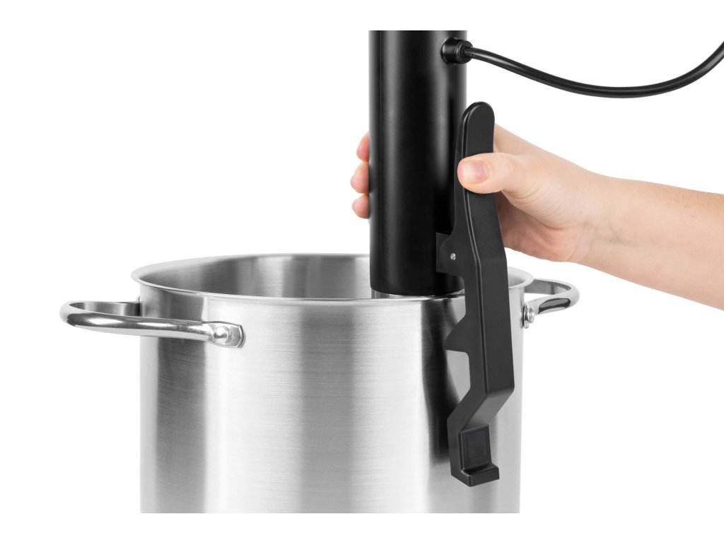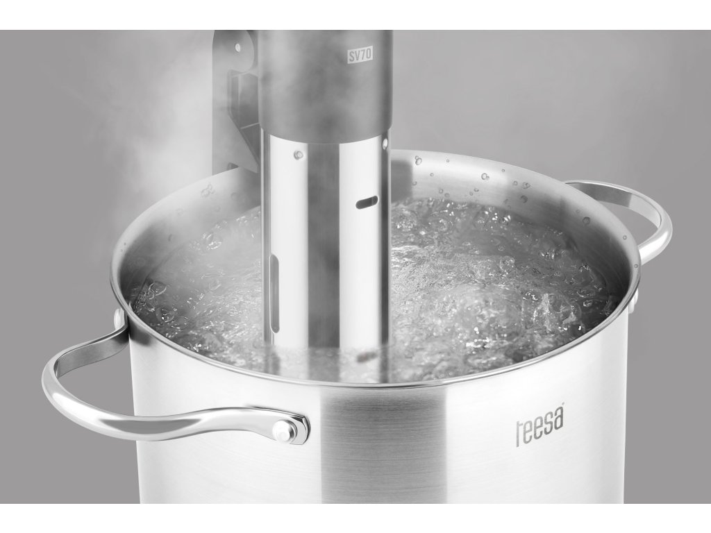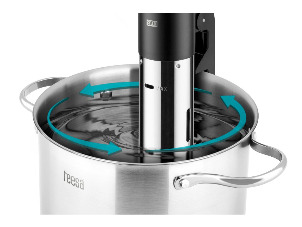 Prednost modela SV70 je njegov dizajn. Praktična kopča znači da sous vide ne zahtijeva posebne lonce, jer ga možete brzo i jednostavno pričvrstiti na bilo koji lonac. Njegov elegantni dizajn također vam daje sigurnost da ćete za ovaj uređaj lako pronaći mjesto u vašoj kuhinji.