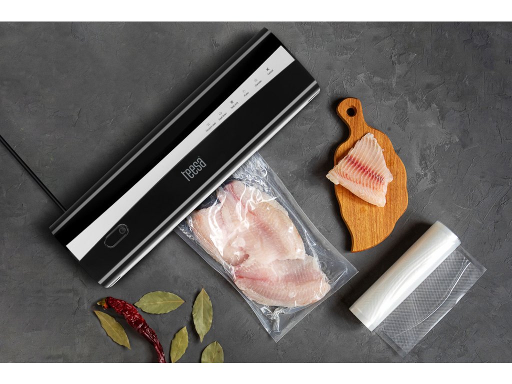 Sous vide znači "u vakuumu". Proizvodi pripremljeni ovom metodom moraju se zatvarati u vakuumske vrećice, pa ako još nemate zavarivača, svakako pogledajte model Teesa V200, koji ima široku 30-centimetarsku foliju u koju stanu sve vrste hrane.