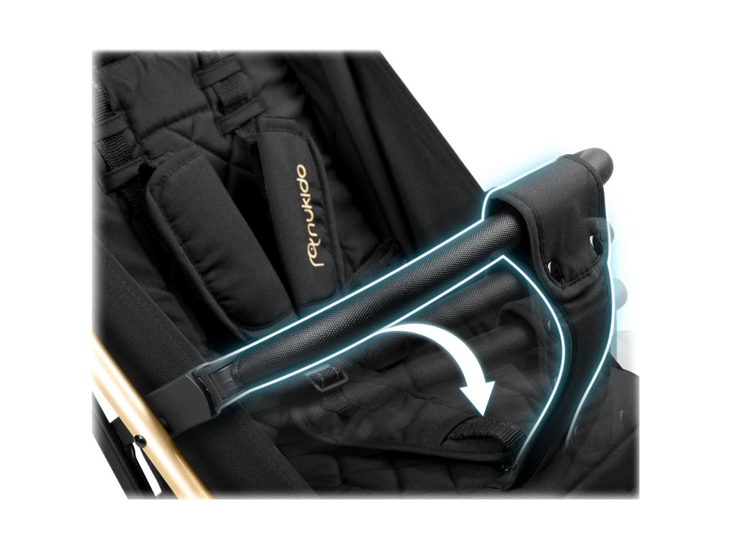 Podesiva sigurnosna barijera - Ova barijera pruža dodatnu zaštitu od slučajnog ispadanja djeteta iz kolica. Može se lako odspojiti ili premjestiti, što olakšava utovar i istovar djeteta iz kolica.