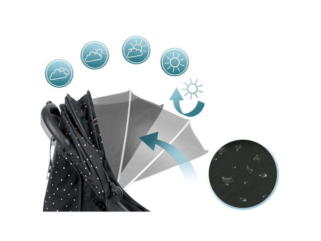 Omogućuje zaštitu djeteta od izravnog sunčevog zračenja, vjetra ili lagane kiše.