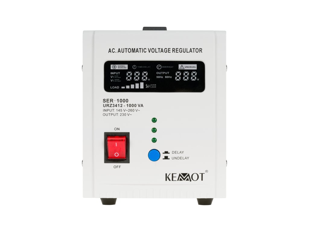 Gubitak podataka, iznenadno isključivanje, oštećenje ili kvar uređaja samo su neki od posljedica nestabilnog napona. Bez obzira na opterećenje mreže i oscilacije izlaznog napona, stabilizator Kemot SER-1000 održava ga na razini od 230 V ±5 %, omogućujući učinkovito funkcioniranje svih uređaja, uključujući one koji su osjetljivi na kvalitetu mrežnog napona. Regulacija se odvija automatski, osiguravajući visoku preciznost izlaznog napona. SER-1000 pronalazi svoju primjenu kako u kućnom tako i u uredskom okruženju, idealno odgovara za audio/video uređaje ili računala.