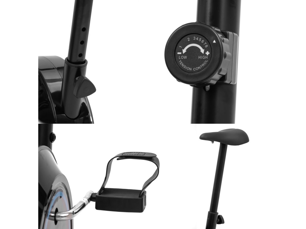 Sobni bicikl RBA-1009 omogućuje vam praćenje i analizu ključnih parametara treninga, poput vremena, brzine, prijeđene udaljenosti i količine potrošenih kalorija. Osim toga, na ručkama se nalaze senzori otkucaja srca koji vam omogućuju stalno praćenje otkucaja srca, pomažući vam održati optimalnu razinu intenziteta treninga. Sve parametre možete pratiti na preglednom LCD zaslonu.