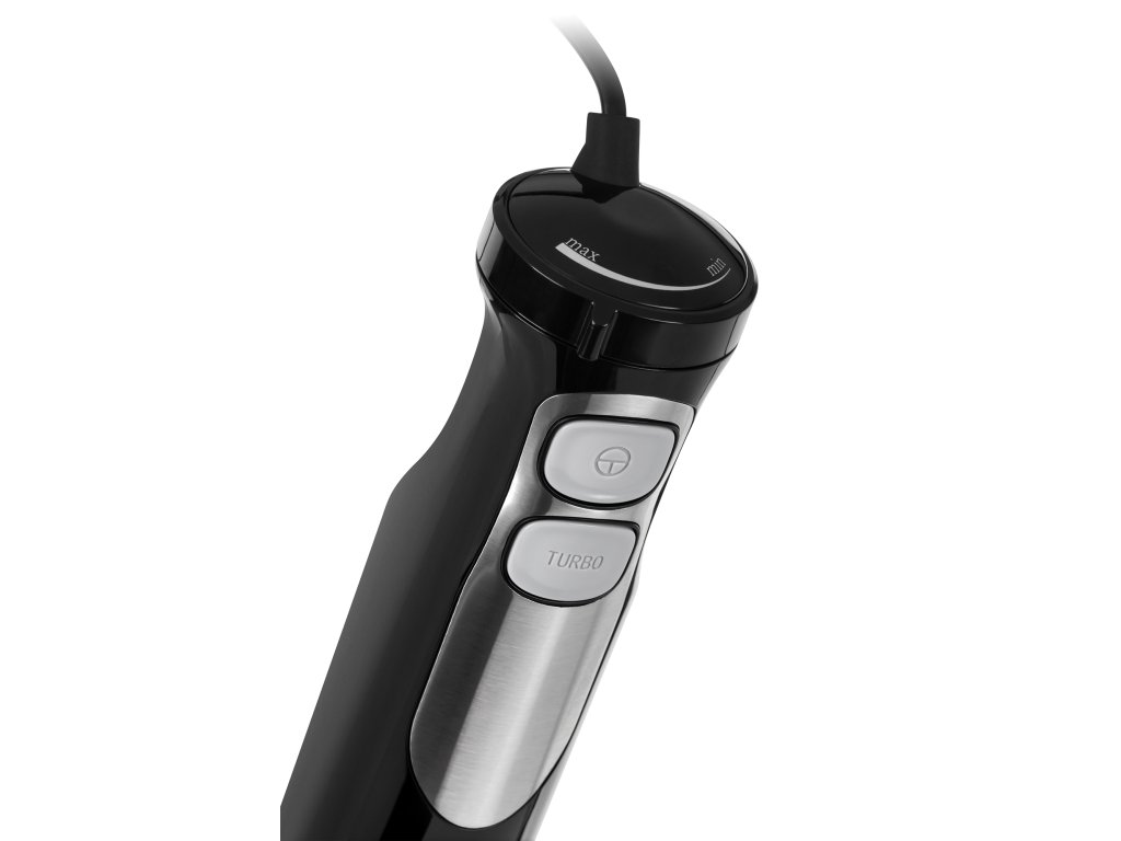 Glatka regulacija okretaja: 8.500 - 12.000 okr/min- Noževi, miješalica, metla: nehrđajući čelik