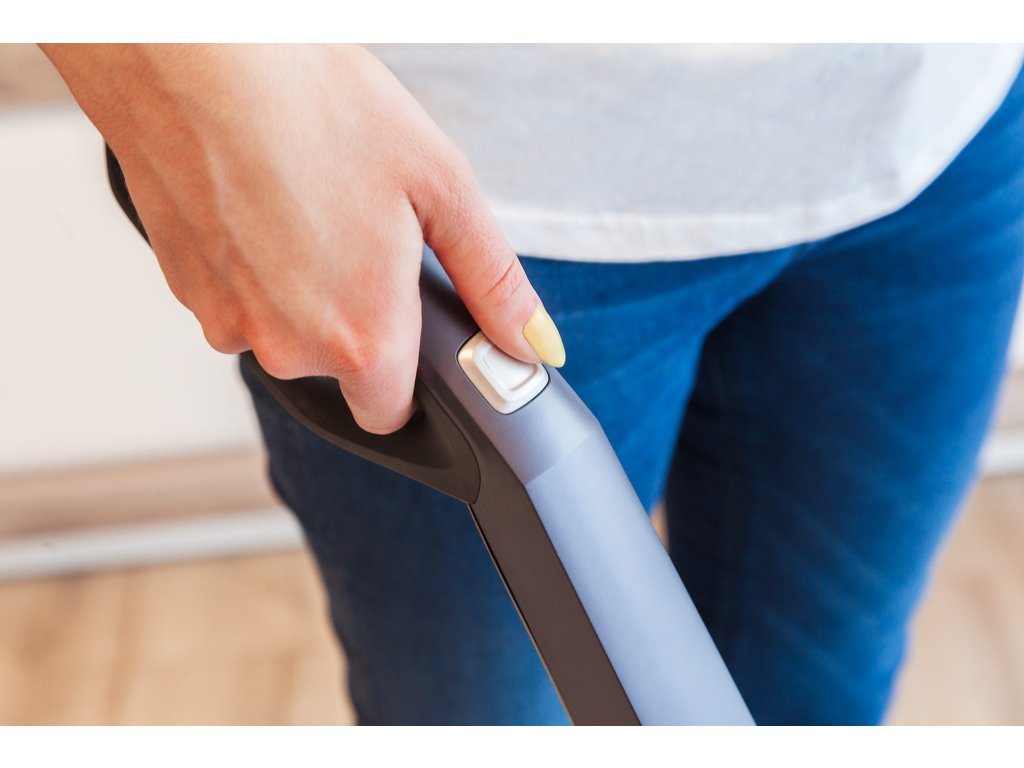 Gumb za podešavanje na ručki omogućuje vam da jednostavno odaberete jednu od dvije razine snage. Ovisno o vrsti površine koja se čisti i stupnju zaprljanosti, možete prilagoditi snagu prema svojim potrebama. Čišćenje nikad nije bilo jednostavnije!