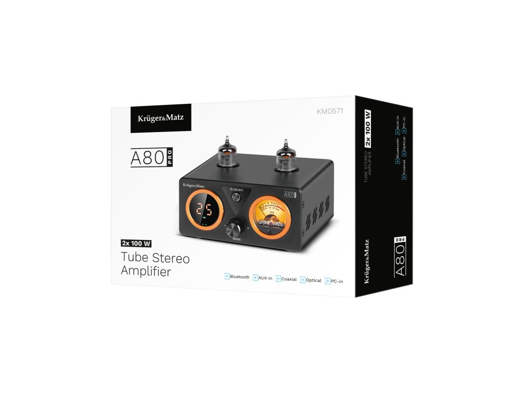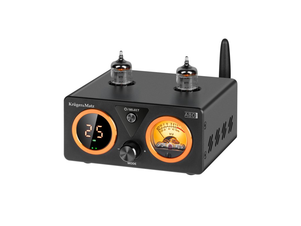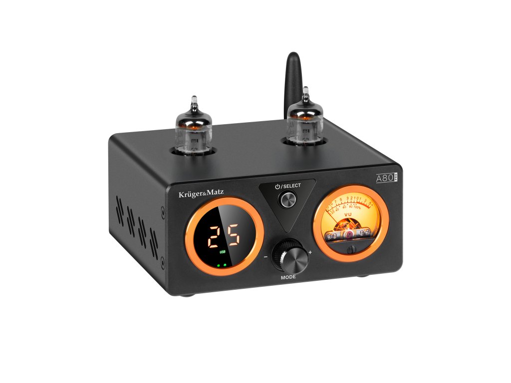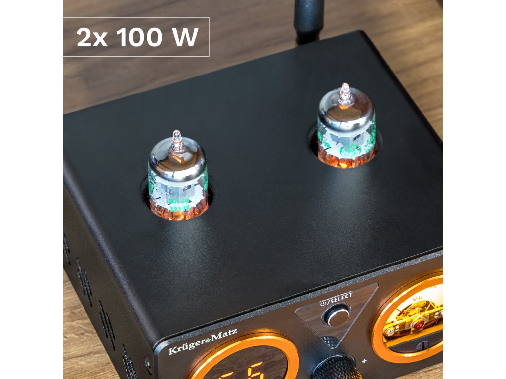 Stereo pojačalo Kruger&Matz, koje radi s izlaznom snagom od 2x100, ističe se uporabom JAN5725 cijevi koje stvaraju topao i prirodan zvuk velike dubine i jasnoće.