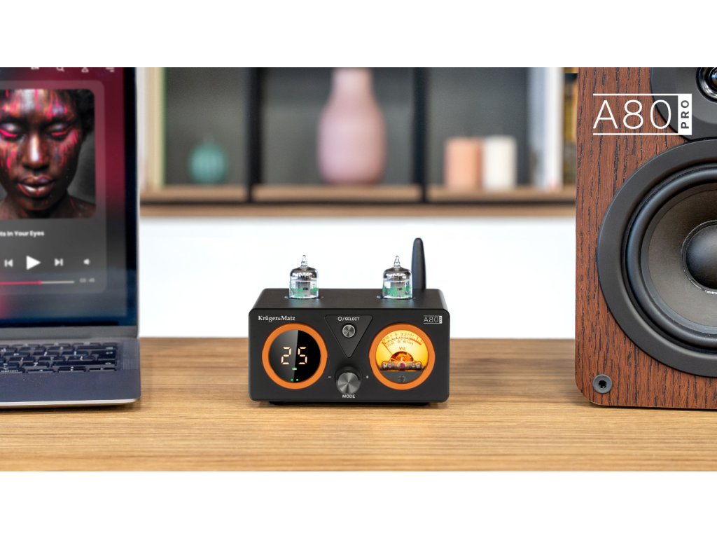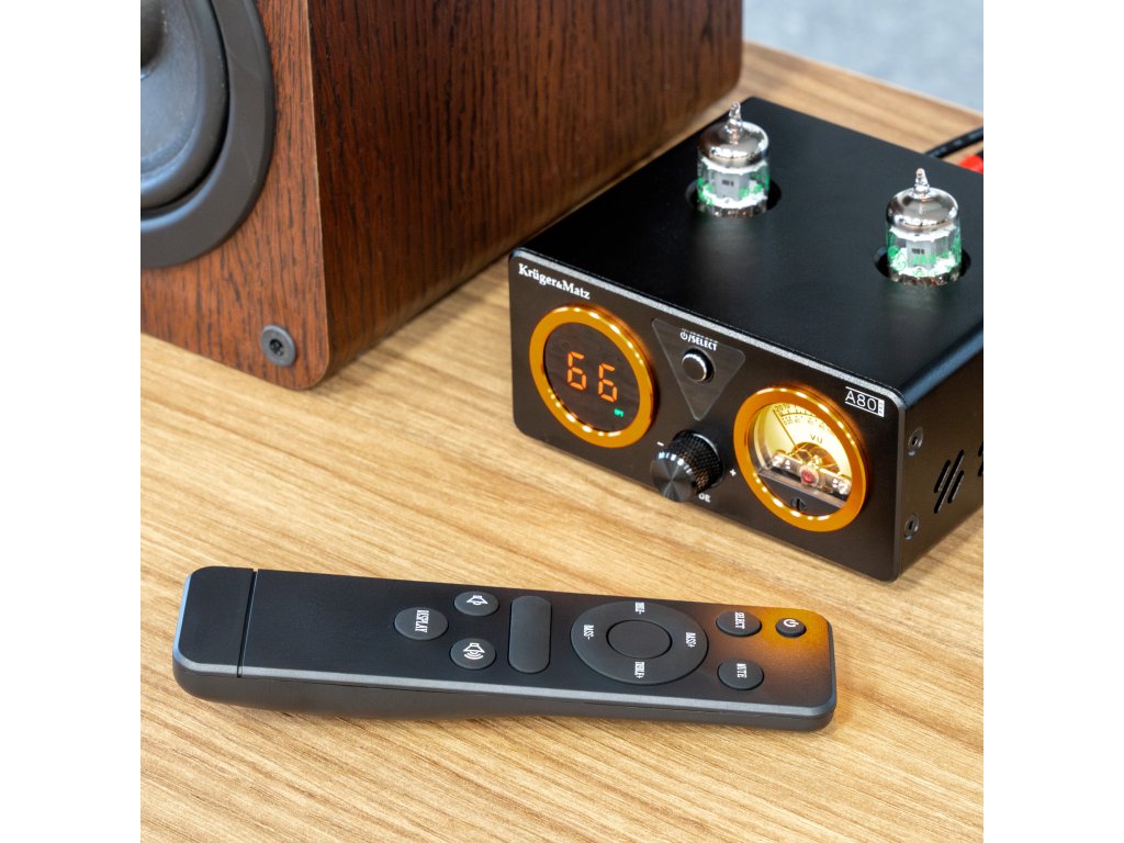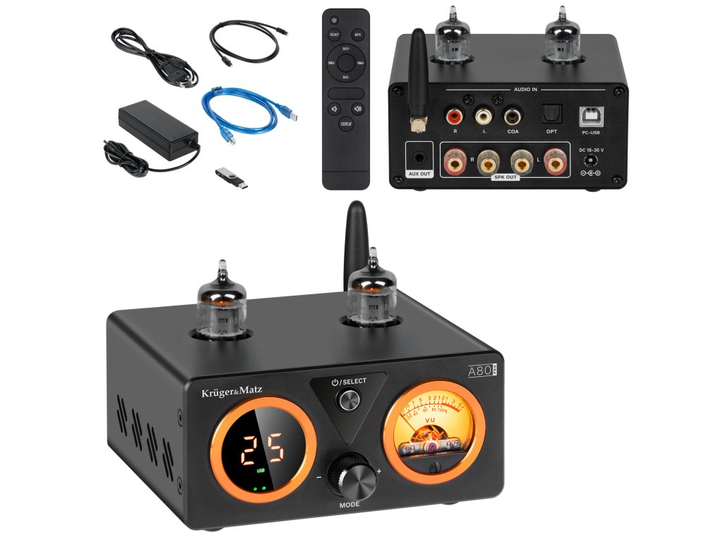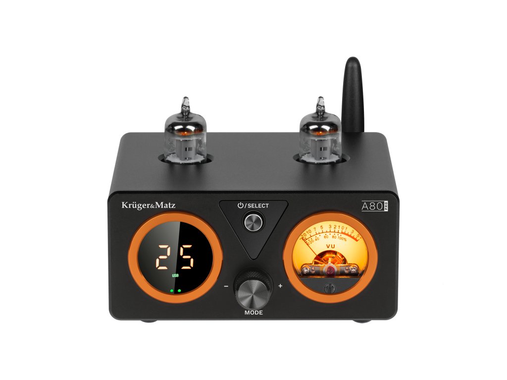Stereo pojačalo Kruger&Matz, koje radi s izlaznom snagom od 2x100, ističe se uporabom JAN5725 cijevi koje stvaraju topao i prirodan zvuk velike dubine i jasnoće.