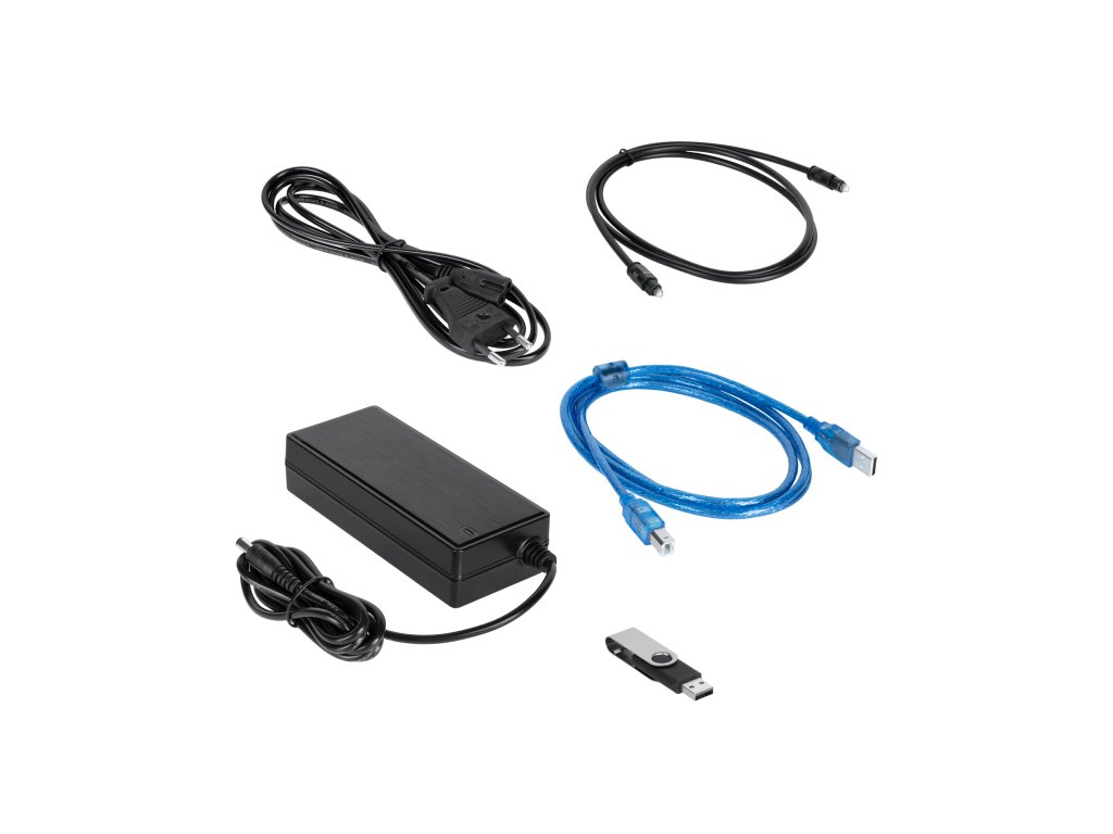 Set uključuje: 2x svjetiljka, daljinski upravljač, privjesak s kontrolama, Bluetooth antenu, USB-B kabel (142 cm), optički kabel (1 m), AC adapter (3 m)