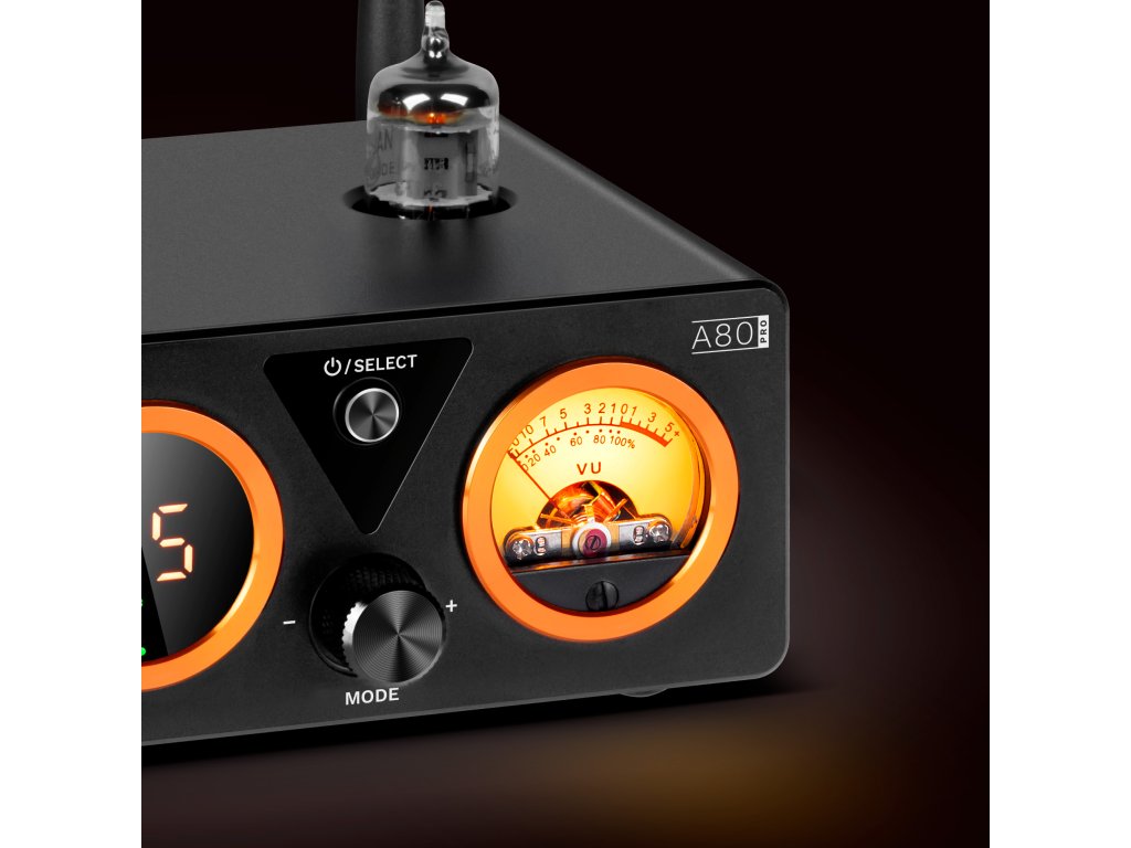 Što privlači pažnju na pojačalu A80-PRO je njegov analogni indikator koji omogućuje vizualnu procjenu razine zvučne mehanike. Ovaj tradicionalni element omogućuje vam ne samo praćenje razine audio signala u stvarnom vremenu, već uređaju daje i retro dizajn.