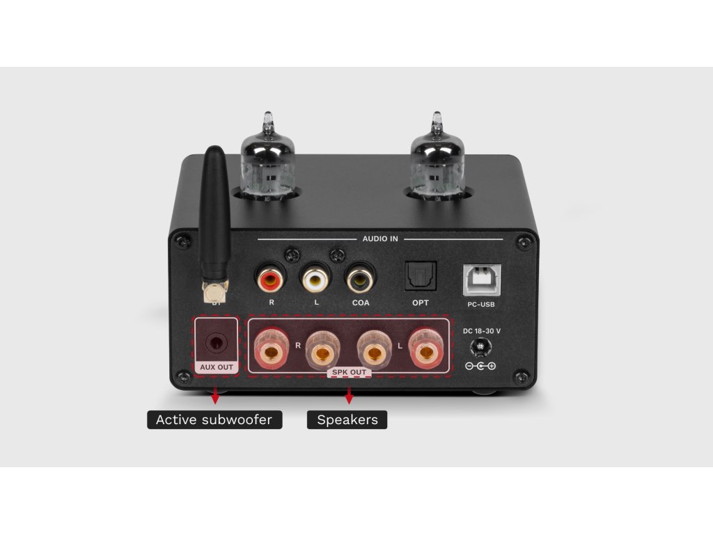 Prilagodite konfiguraciju zvuka prema vlastitim preferencijama! Izlaz zvučnika smješten na stražnjem poklopcu omogućuje vam povezivanje pojačala sa zvučnicima. AUX izlaz omogućuje povezivanje subwoofera.
