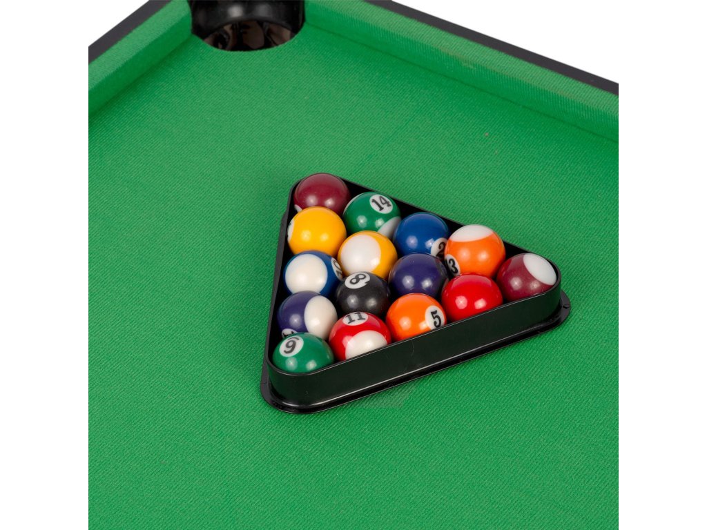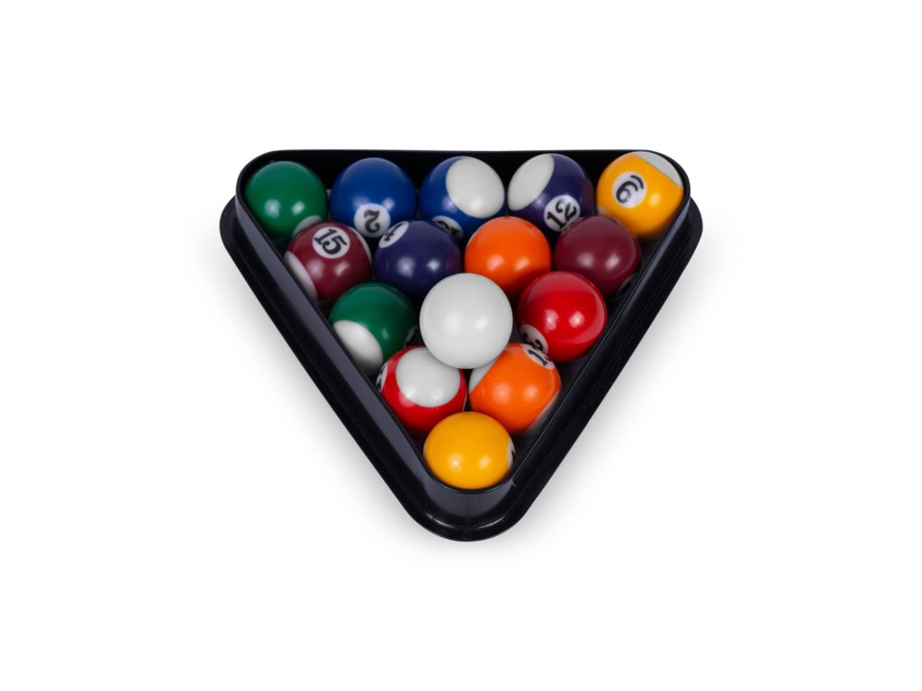 Set također sadrži sav potreban pribor: 2 štapa, 16 kuglica, trokut i 2 biljarške krede.