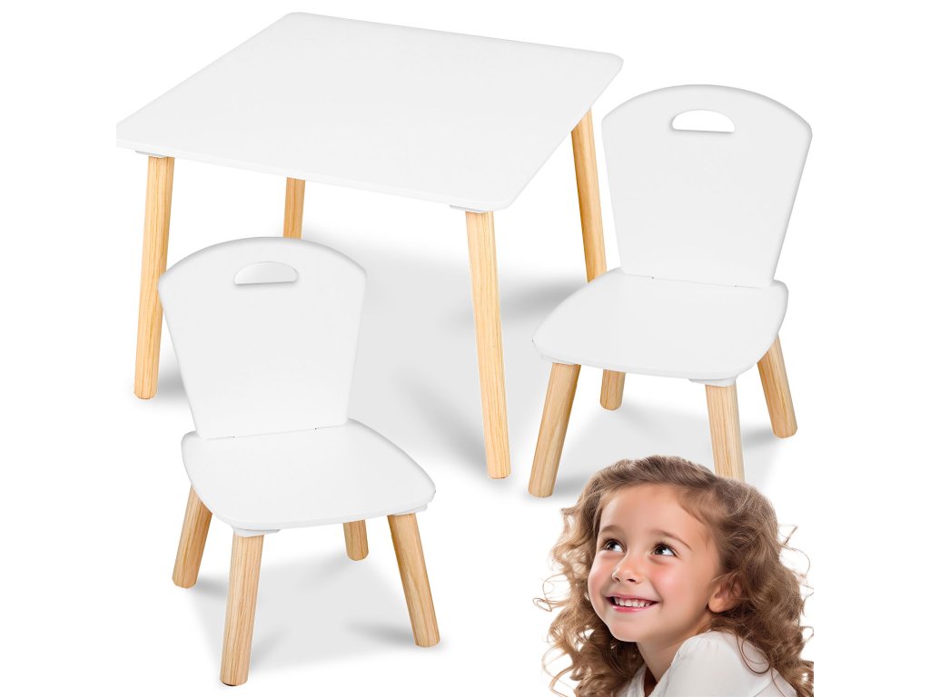 Set sadrži stolić, dvije stolice i jednostavne upute na poljskom.