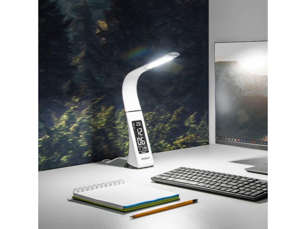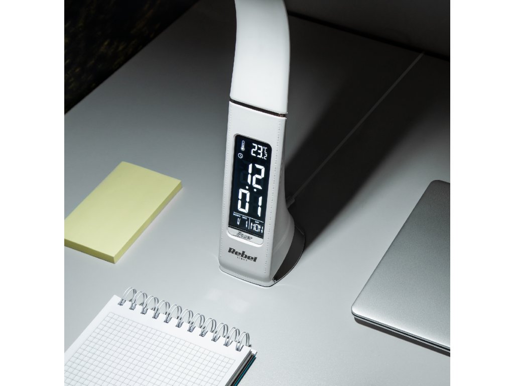 Volite li jednostavne i funkcionalne uređaje Ako je odgovor da, sigurno će vam se svidjeti stolna LED lampa s zaslonom od Rebel. Zahvaljujući gore spomenutom zaslonu, s kojim je uređaj opremljen, znat ćete točno vrijeme, datum, dan u tjednu i temperaturu, a također ćete moći postaviti alarm i odgoditi buđenje - idealno rješenje za ljude koji cijene praktična rješenja. Važno je da iako je ova stolna lampa napajana iz mreže, čak i u slučaju nestanka struje možete zadržati podešavanje vremena i rad alarma pomoću baterije.