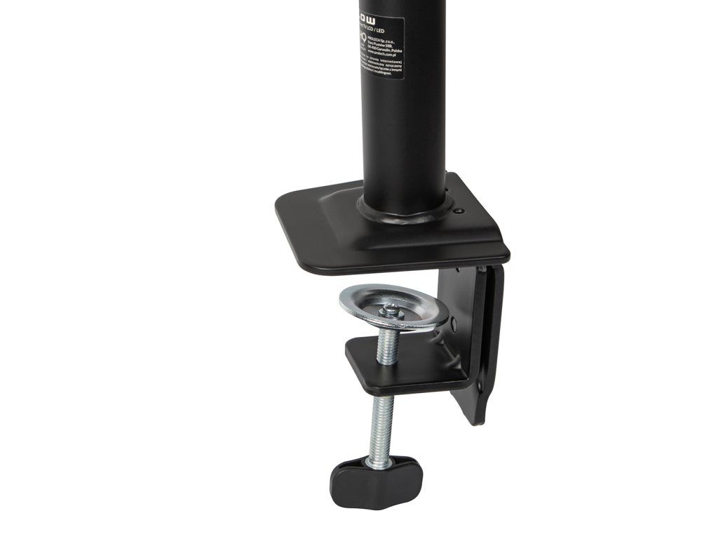 Ruka je opremljena izdržljivom montažnom stezaljkom, koja omogućuje pričvršćivanje na gotovo bilo koju radnu površinu ili drugu ravnu površinu. Idealno za upotrebu u uredu i kod kuće. Instalacija držača ne zahtijeva bušenje rupa u stolovima, stolovima ili zidovima. Klasični i elegantni dizajn ručke uklapa se u bilo koju vrstu interijera