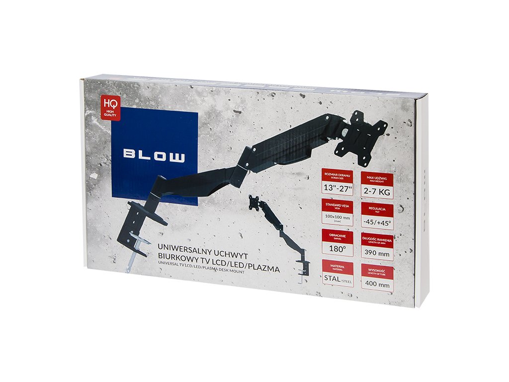 Univerzalni stolni nosač sa zglobom dizajniran je kako bi omogućio vješanje tankog televizora ili monitora na okomiti zid. Maksimalna nosivost nosača iznosi 2-7 kg. Veličina montiranog ekrana je u rasponu 13"-27". Nosač omogućuje jednostavno podešavanje nagiba panela u rasponu od -45/+45 stupnjeva.