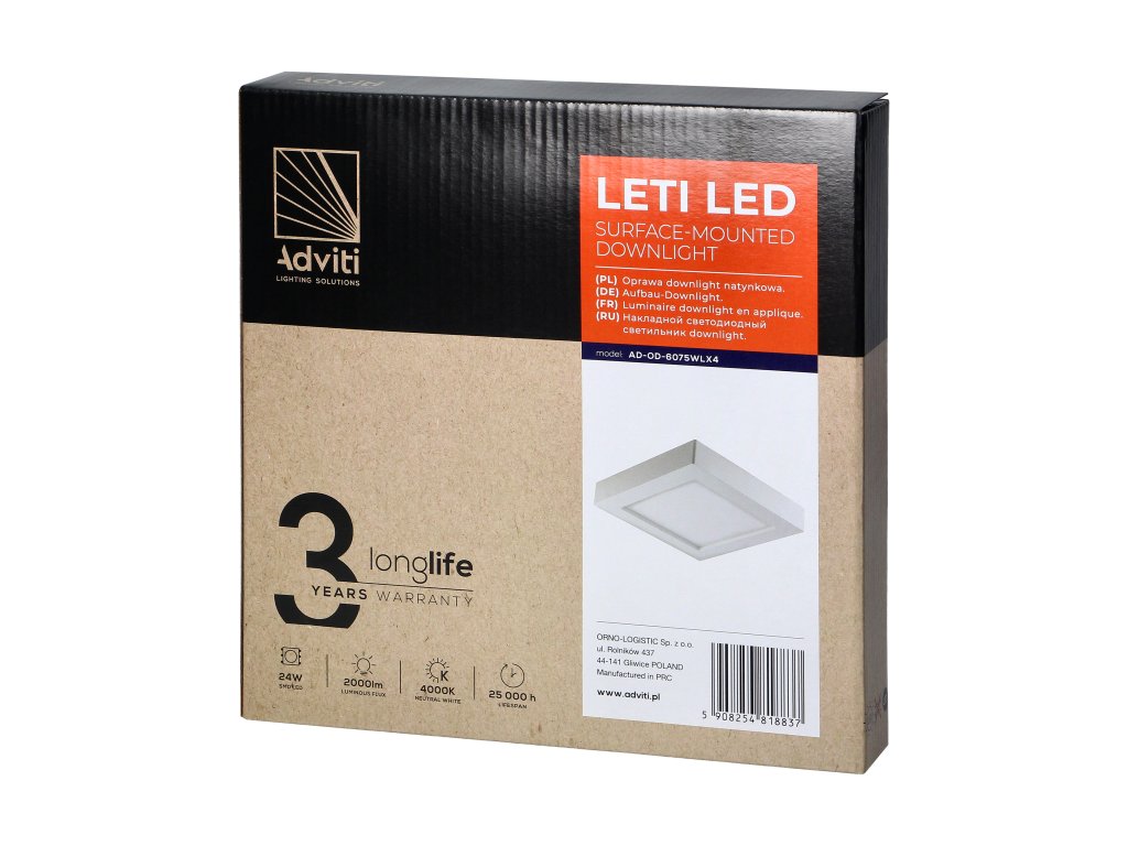 - Učinak i učinkovitost: Stropna LED svjetiljka 24W, kvadratna, 4000K pruža iznimnu svjetlosnu učinkovitost uz nisku potrošnju energije. LED tehnologija osigurava dug životni vijek i niske troškove održavanja, što je atraktivno za svako kućanstvo ili komercijalni prostor.