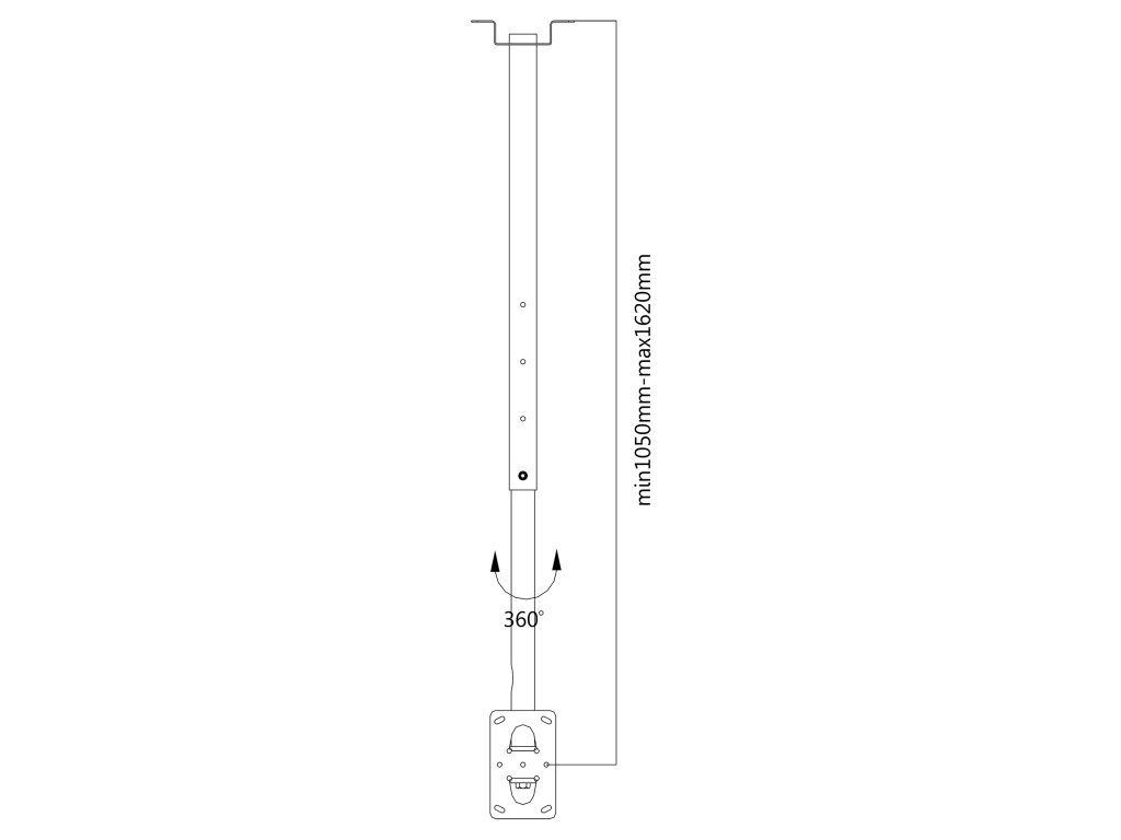 Przeznaczenie: z wybranymi uchwytami do telewizorów LCD* Montaż: Do sufitu Maks. Obciążenie: 75 kg Maks. Rozstaw otworów montażowych: 150x90 Regulacja w poziomie: +180° ~ -180° Regulacja wysokości: 1050 - 1620 mm Poziomica: Nie Zarządzanie kablami: Tak Pasuje do zakrzywionych ekranów: Nie Blokada antykradzieżowa: Nie Materiał: Stal Wykończenie powierzchni: Malowany proszkowo Kolor: Czarny W zestawie: Śruby montażowe * Do zastosowania z uchwytami: UCH0040S, UCH0040A, UCH0020A, UCH0020SPrzeznaczenie: z wybranymi uchwytami do telewizorów LCD*