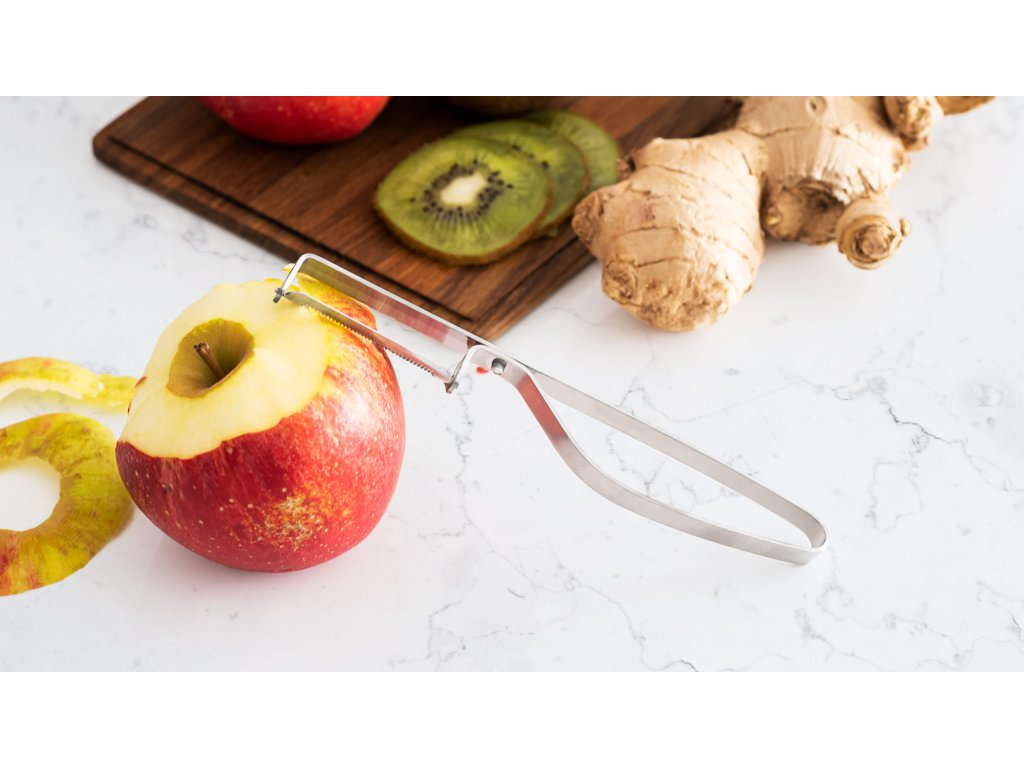 Robusna konstrukcija strugalice za povrće Teesa izrađena je od nehrđajućeg čelika i jamči dugotrajnu uporabu. Možete je objesiti na praktičnu kuku, a za dodatnu udobnost može se prati u perilici posuđa.