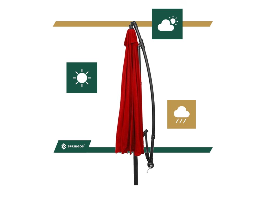 U slučaju jakog naleta vjetra preporučuje se sklopiti kišobran zbog veličine sjenila i sigurnosti povezane s tim.