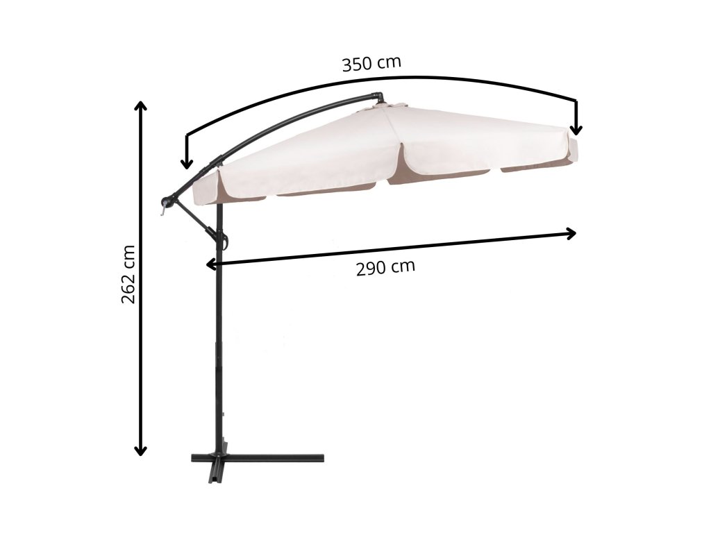 - Širina materijala kišobrana (uključujući volane): 350 cm