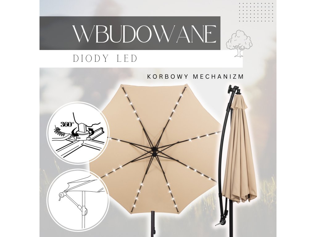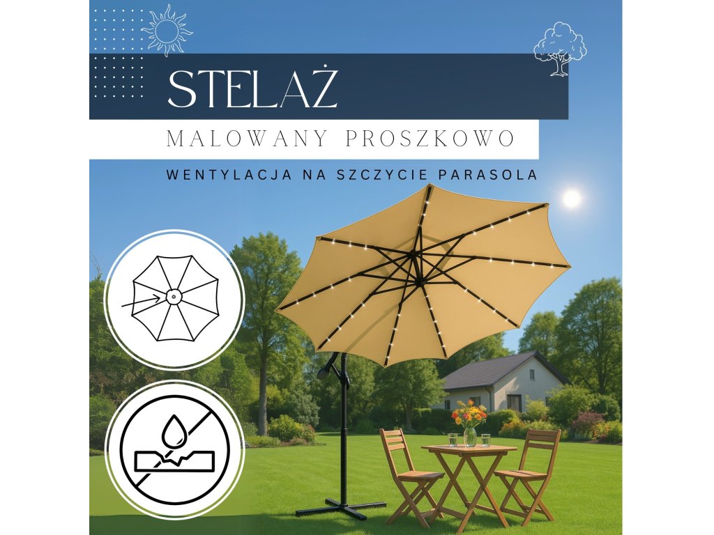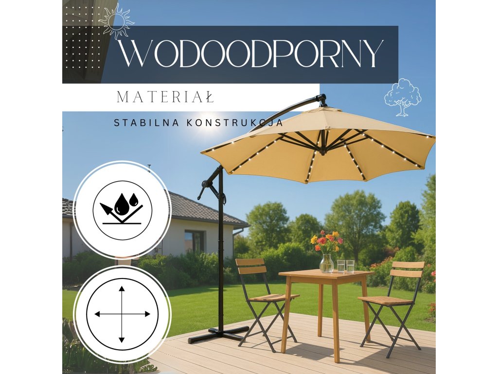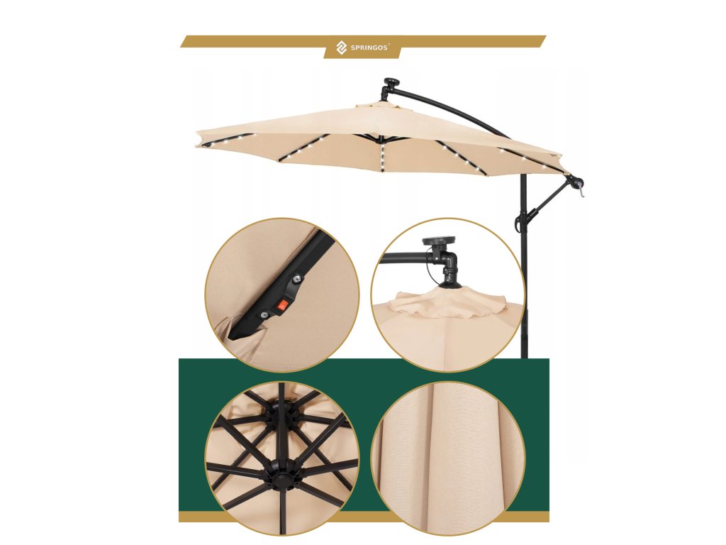 - Solarni panel pričvršćen za suncobran pomoću kabela koji se nalazi na vrhu suncobrana