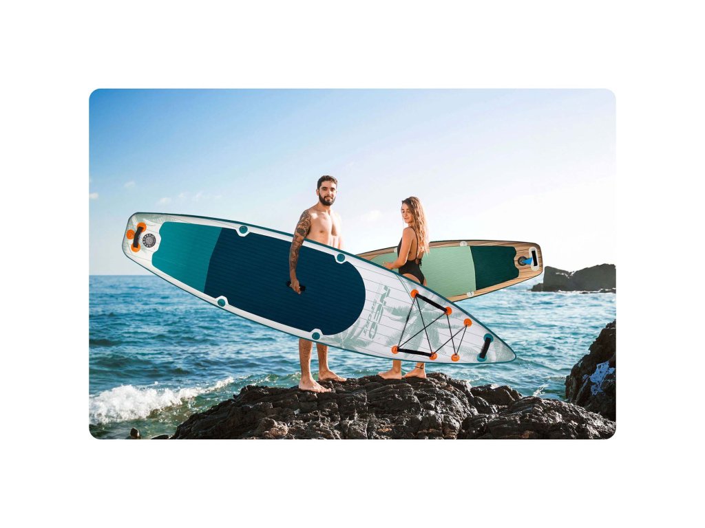 Premium paddleboard s troslojnom konstrukcijom PVC-a, ugrađenom tračnicom od karbonskih vlakana i ojačanim šavovima.