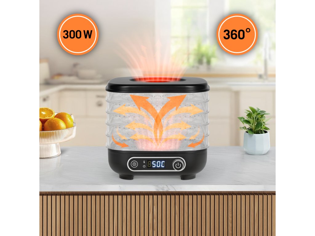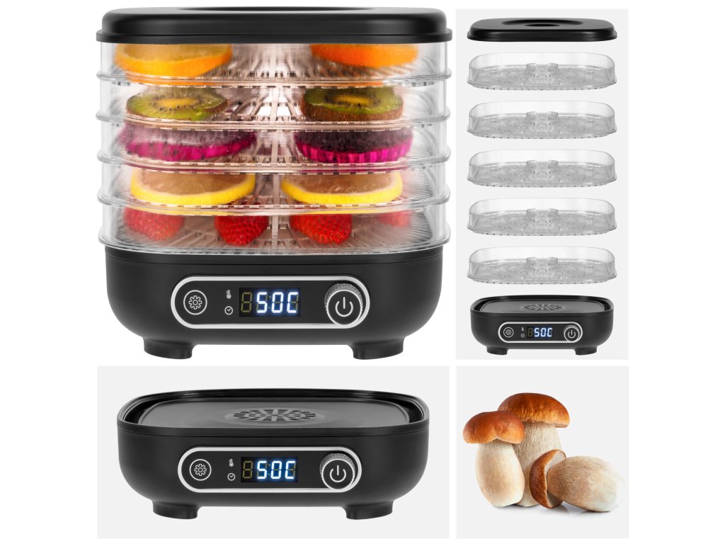 Sušilo za gljive, povrće, voće, 300W, 5 rešetki, zaslon, termička cirkulacija, TEESA