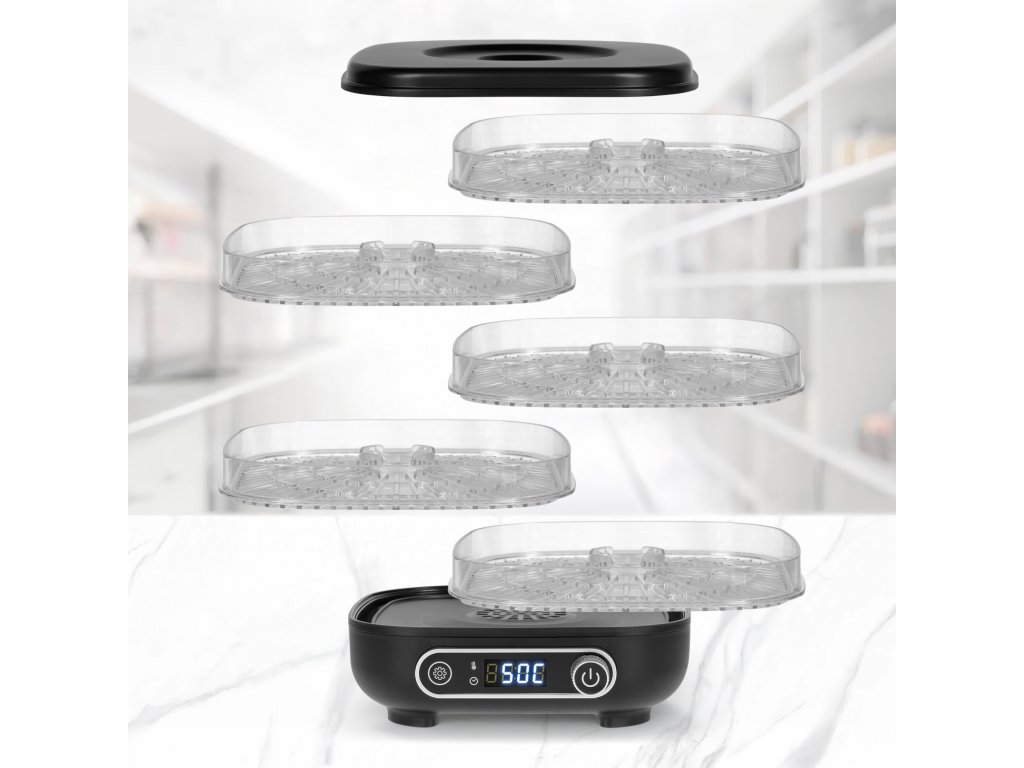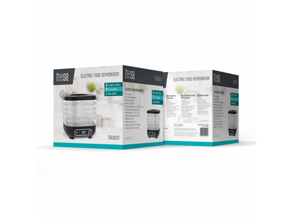 Sušilica za hranu Teesa nudi do 5 razina sušenja, što omogućava pripremu veće količine proizvoda istovremeno. Prozirna sita omogućavaju praćenje procesa bez prekida rada, čime se održava stalna temperatura i štedi energija.