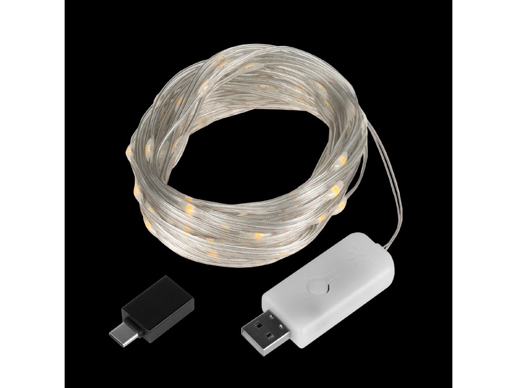 Svjetlosni lanacBožićni svjetlosni lanac Cabletech duljine 10 m izvrstan je način za stvaranje magične atmosfere u svakom interijeru ili eksterijeru. Sa 100 LED dioda u toploj bijeloj svjetlosti nudi lanac do 8 učinkovitih načina osvjetljenja, što omogućuje prilagodbu rasvjete različitim prilikama. Zahvaljujući vodootpornosti IP65 (IP20 za USB priključak) možete ga bez brige koristiti unutra i vani. Napajan putem USB-a omogućuje jednostavnu instalaciju i uštedu energije. Idealna opcija za blagdane, proslave ili svakodnevno ukrašavanje prostora!