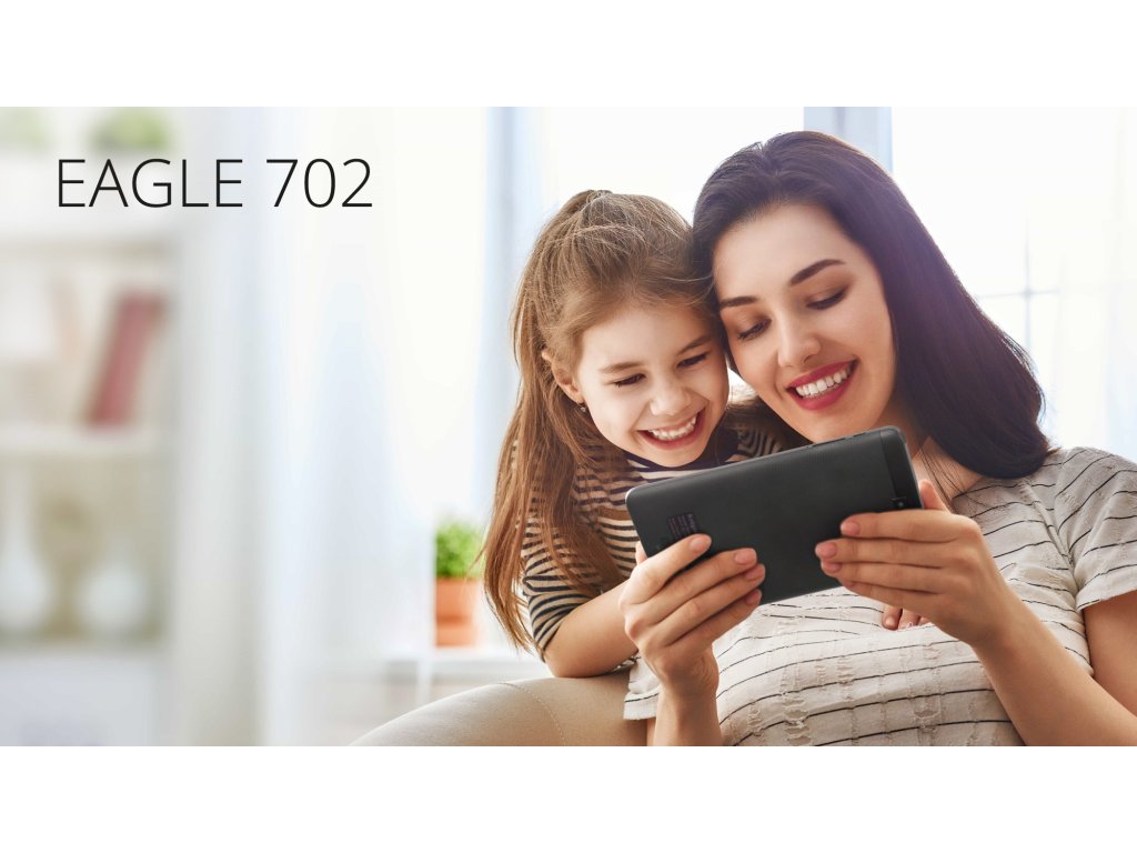 Model EAGLE 702 pružit će vam savršeno iskustvo. Zahvaljujući 7" IPS zaslonu s rezolucijom 720 × 1280 px, HD gledanje filmova, pregledavanje fotografija ili igranje aplikacija bit će jasno i bogato bojama. Pogledajte koliko često ovaj prijenosni zabavni centar donosi radost cijeloj vašoj obitelji.