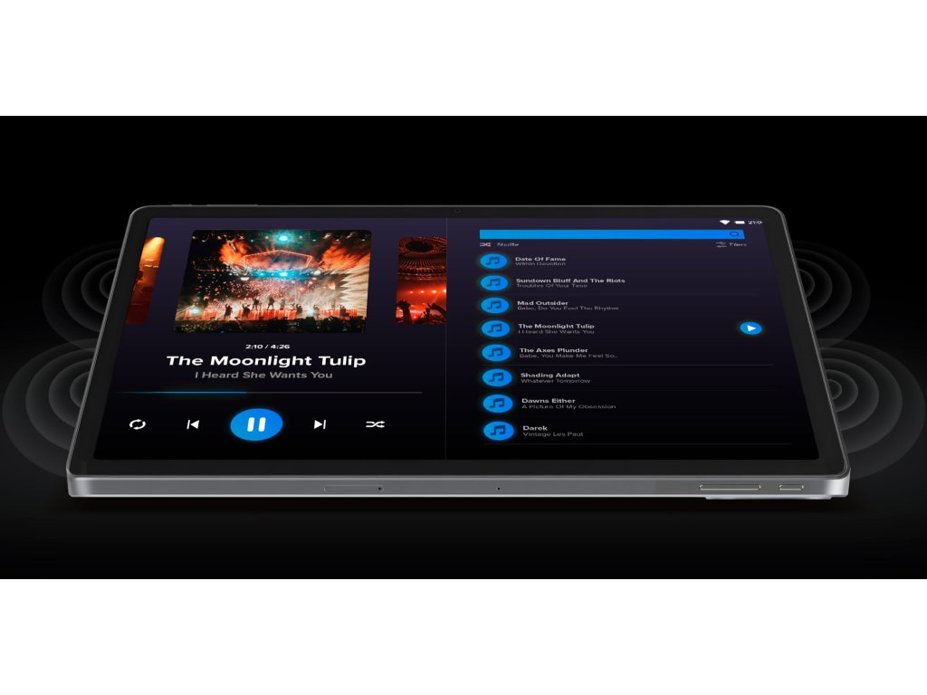 Četiri zvučnika snage 1 W omogućuju uživanje u izvrsnoj kvaliteti zvuka. Tablet nudi prostorni, čist i dinamičan zvuk koji dolazi do izražaja pri gledanju filmova, slušanju glazbe i razgovorima. To je mnogo više od tipičnog tableta – to je prava mobilna multimedijalna stanica.