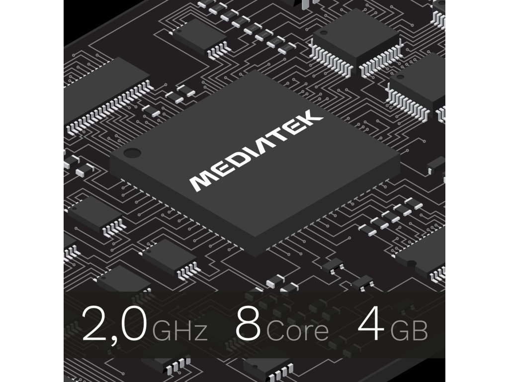 CPU: MediaTek MT8768A, ARM-Cortex A53, Octa core, 64-bit