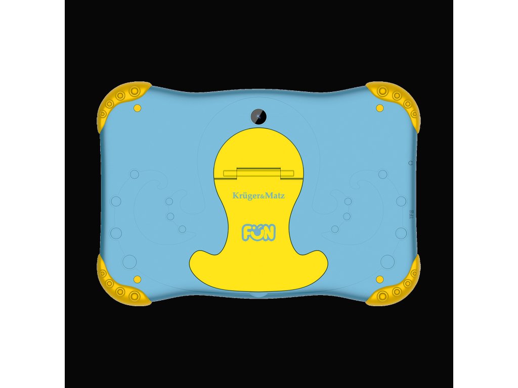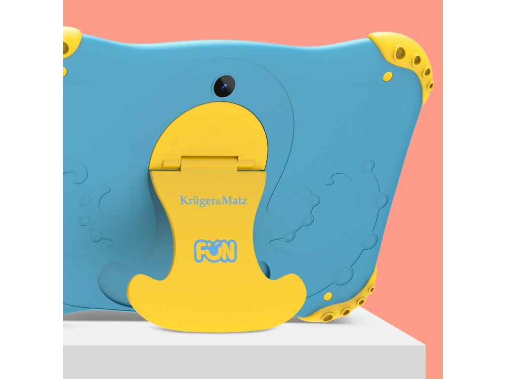 Tableti za djecu trebali bi se razlikovati ne samo čvrstom konstrukcijom nego i zanimljivim dizajnom koji privlači pažnju izdaleka. U skladu s tim, šareni omot tableta Kruger&Matz FUN 708 opremljen je gumenim rubovima koji pružaju zaštitu od slučajnih padova i udaraca.