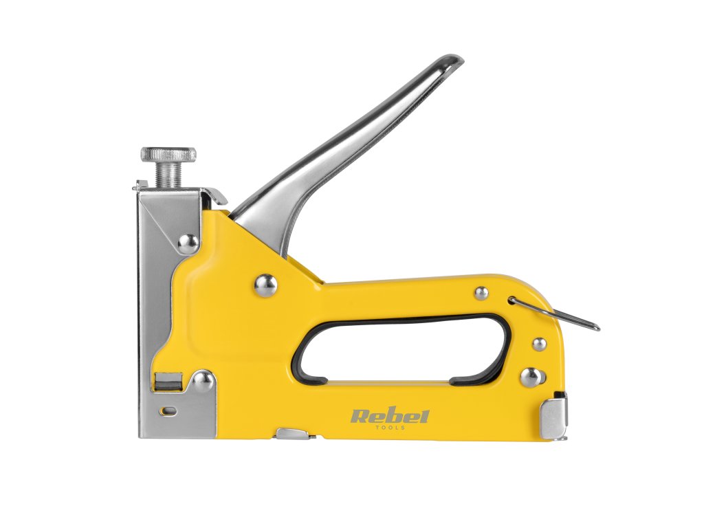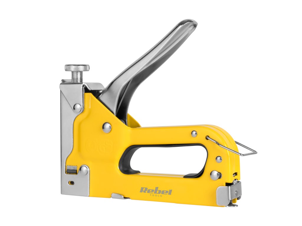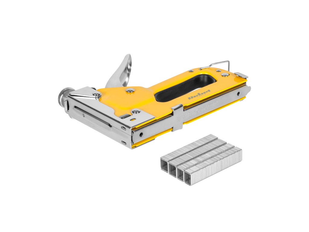 Tapetarski klamerica Cabletech je pouzdan alat koji olakšava svaki tapetarski rad. Zahvaljujući gumiranoj dršci pruža udoban i čvrst hvat, a podesiva snaga zabijanja omogućuje prilagodbu alata različitim materijalima i debljinama tkanina.