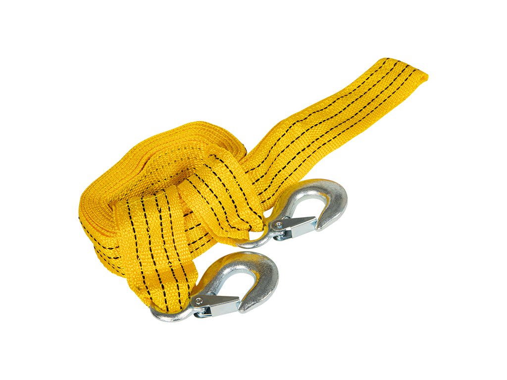Wytrzymała, pleciona linka holownicza z dwoma hakami.