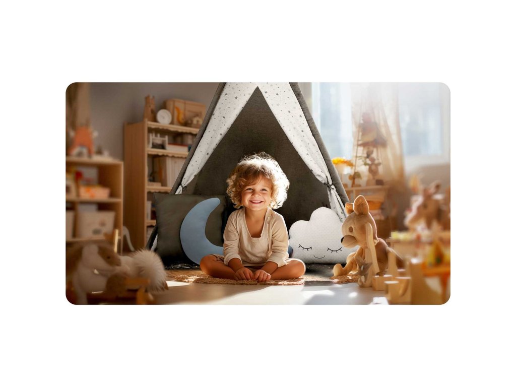 Šator tipija u obliku indijskog TIPI-ja upotpunit će dekoraciju dječje sobe.