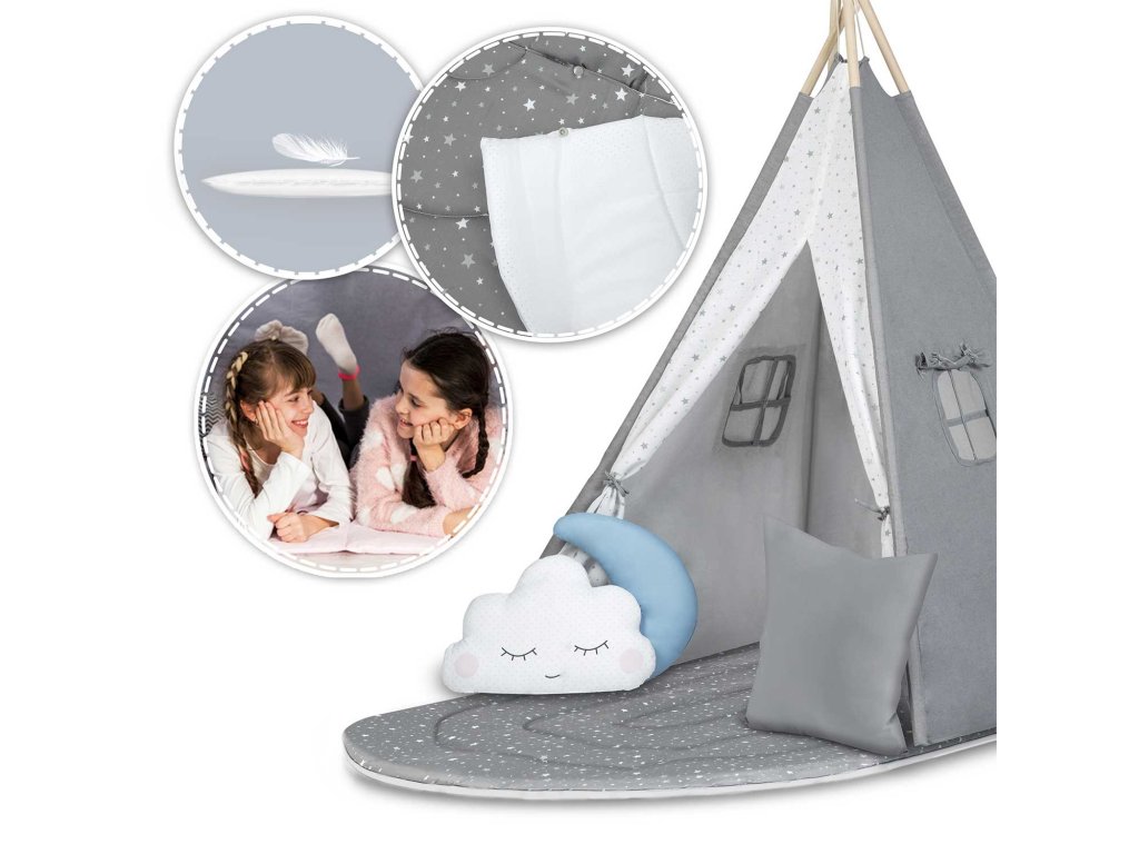 Svaki TIPI dolazi s setom od 3 jastuka vidljivih na fotografiji (kvadrat, mjesec i oblak)!
