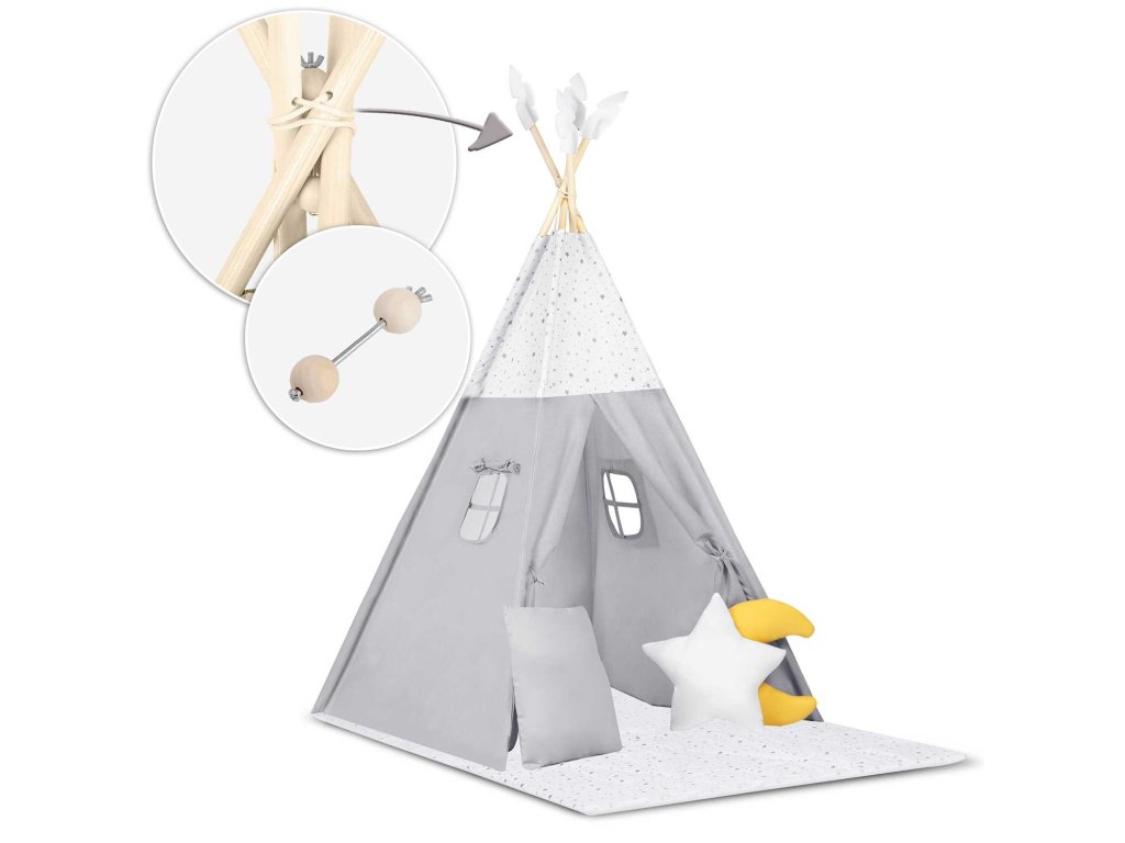 Za veću sigurnost djece, set teepee sadrži stabilizator. Zahvaljujući njemu, ne morate brinuti o svojem djetetu; šator je maksimalno siguran i lako ga premjestiti na drugo mjesto.