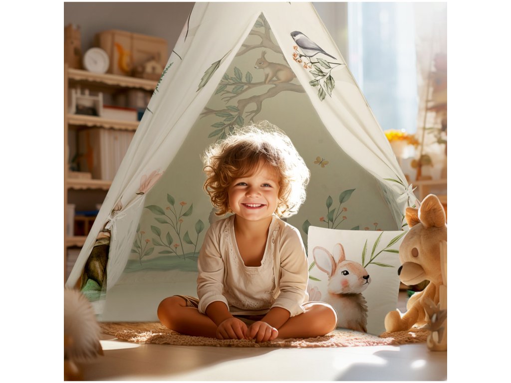 Svaki TIPI dolazi s prekrasnim jastukom s motivom zeca i stabilizatorom , koji je vidljiv na fotografiji!