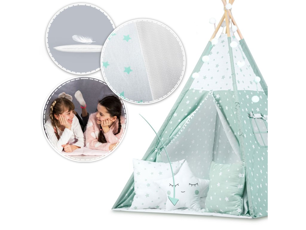 Da bi zabava bila još ugodnija, pričvrstit ćemo za teepee šator jastuke i izolacijsku podlogu s protukliznim ulošcima.