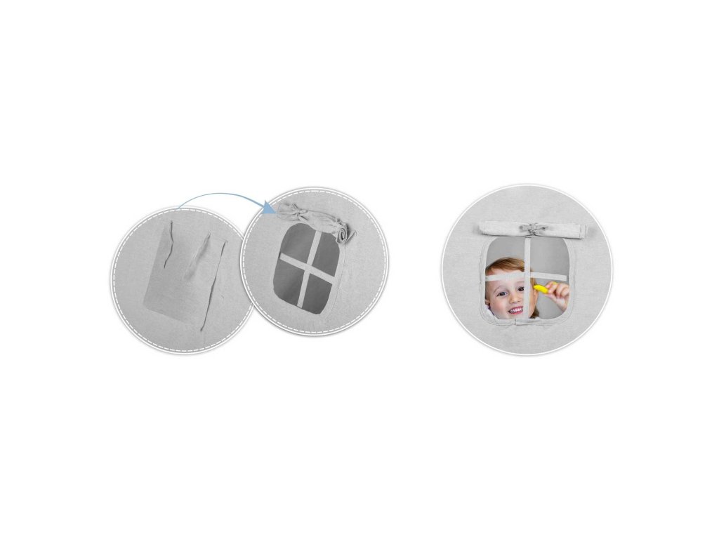 Šator se u sklopljenom stanju lako prenosi. Može se smjestiti u društvenoj sobi kao prostor za igru ili u vrtu za zaštitu od jakog sunca.